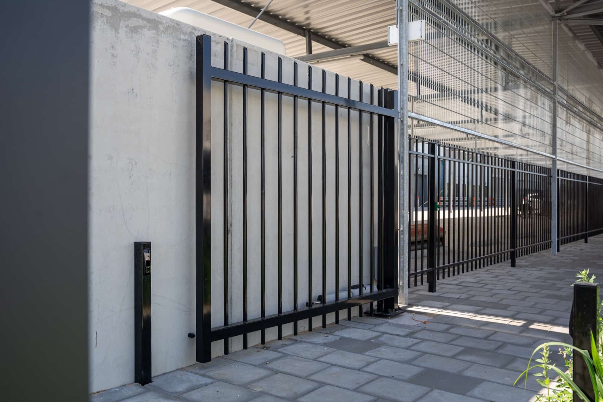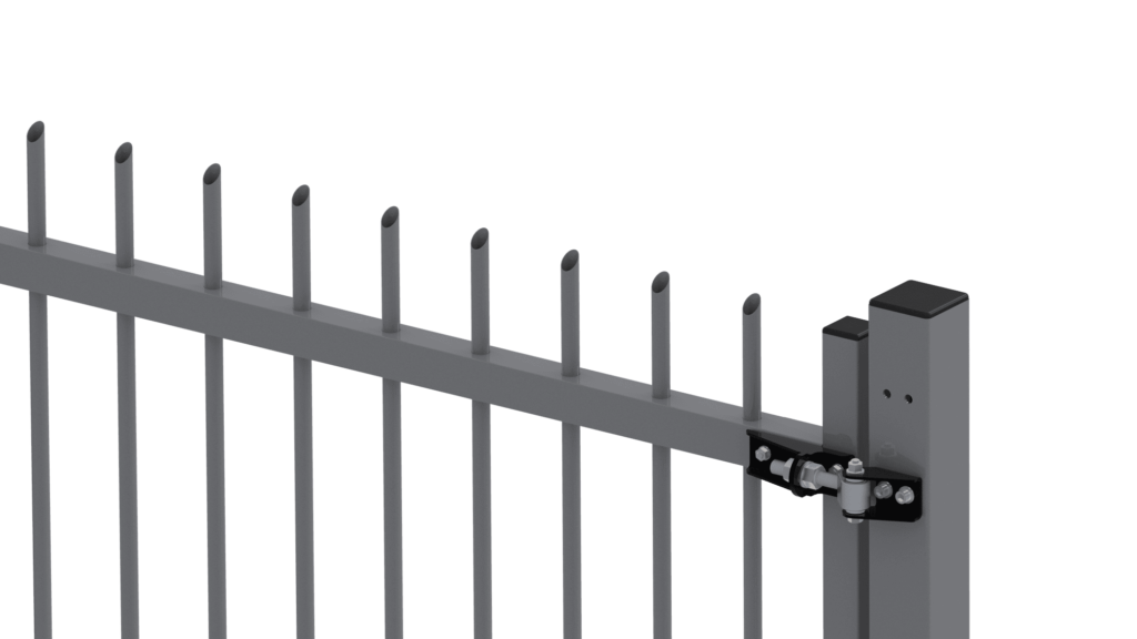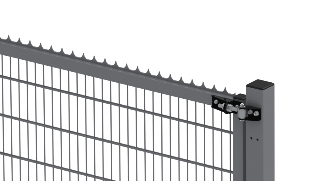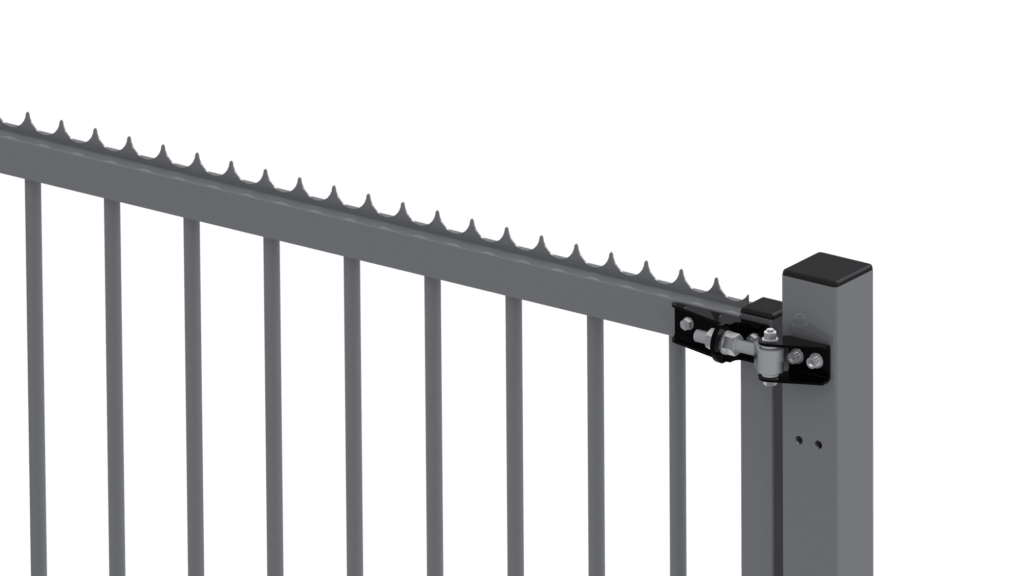 De Barricade-uitvoering van de Pro-Turner draaipoort heeft ronde, aluminium spijlen tussen de liggers. Dit zorgt voor een stevige en moderne uitstraling. Voor extra beveiliging tegen overklimmen, wordt deze poort bij een hoogte vanaf 150 cm voorzien van een scherpe puntenkam.