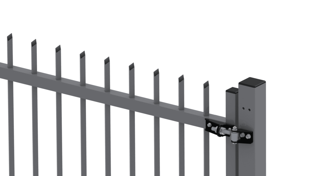 De Palissade-uitvoering is voorzien van vierkante, kwartslag gedraaide spijlen, wat de poort een robuust uiterlijk geeft. De spijlen steken door de bovenligger heen, wat zorgt voor extra bescherming tegen overklimmen.