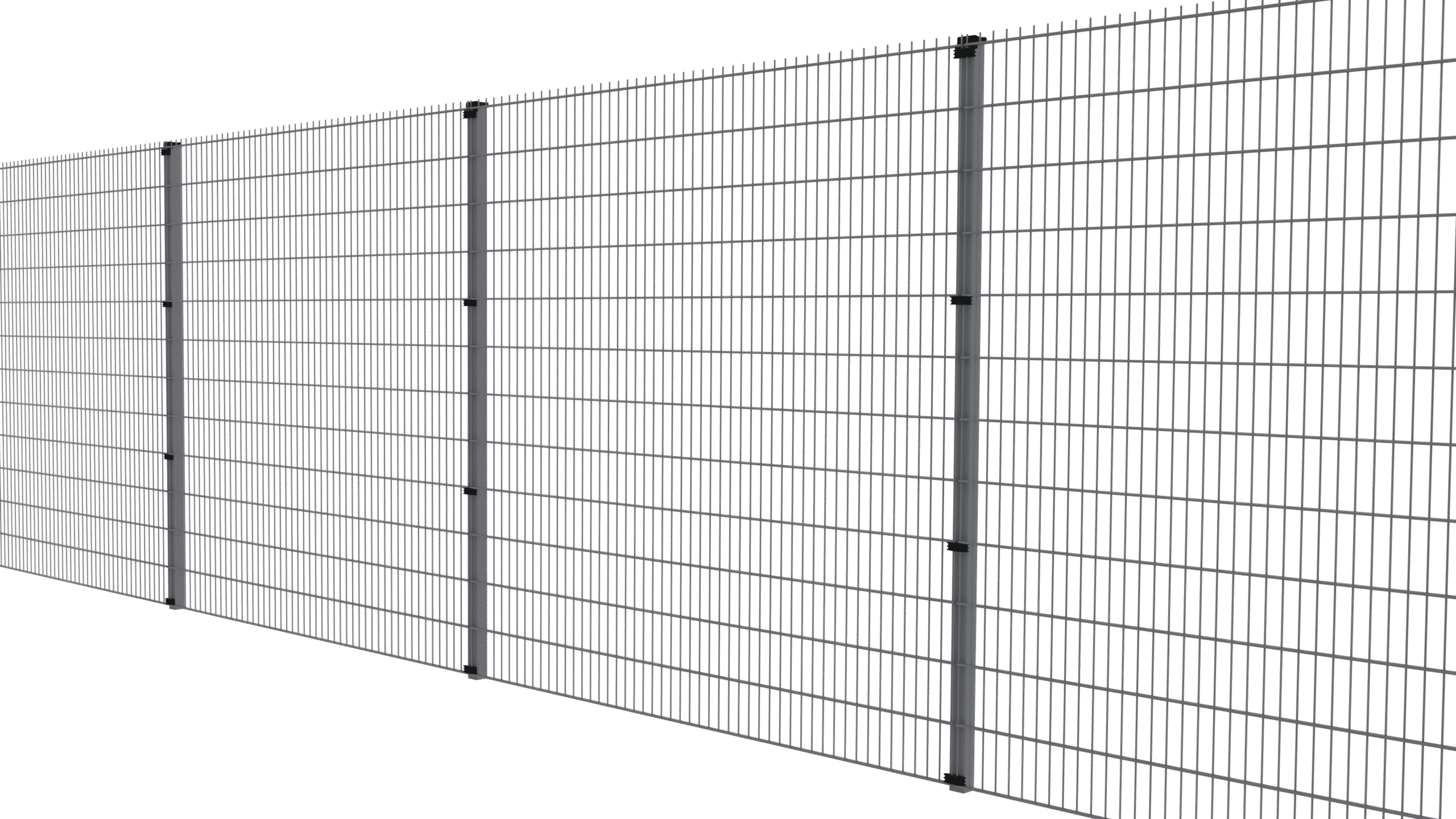 Dubbelstaafs draadmat van zware kwaliteit, versterkt met twee horizontale draden (ø8 mm) en één verticale draad (ø6 mm), met mazen van 50 x 200 mm. Deze zijn stevig verankerd aan staanders met vandaalbestendige klemmen, ideaal voor locaties die extra beveiliging vereisen.