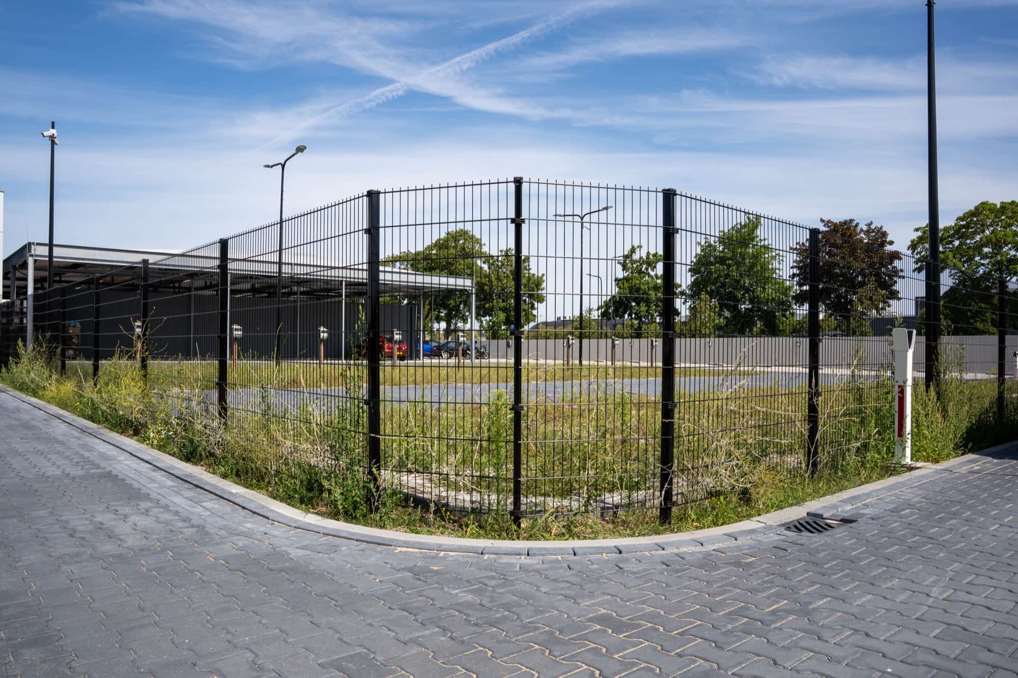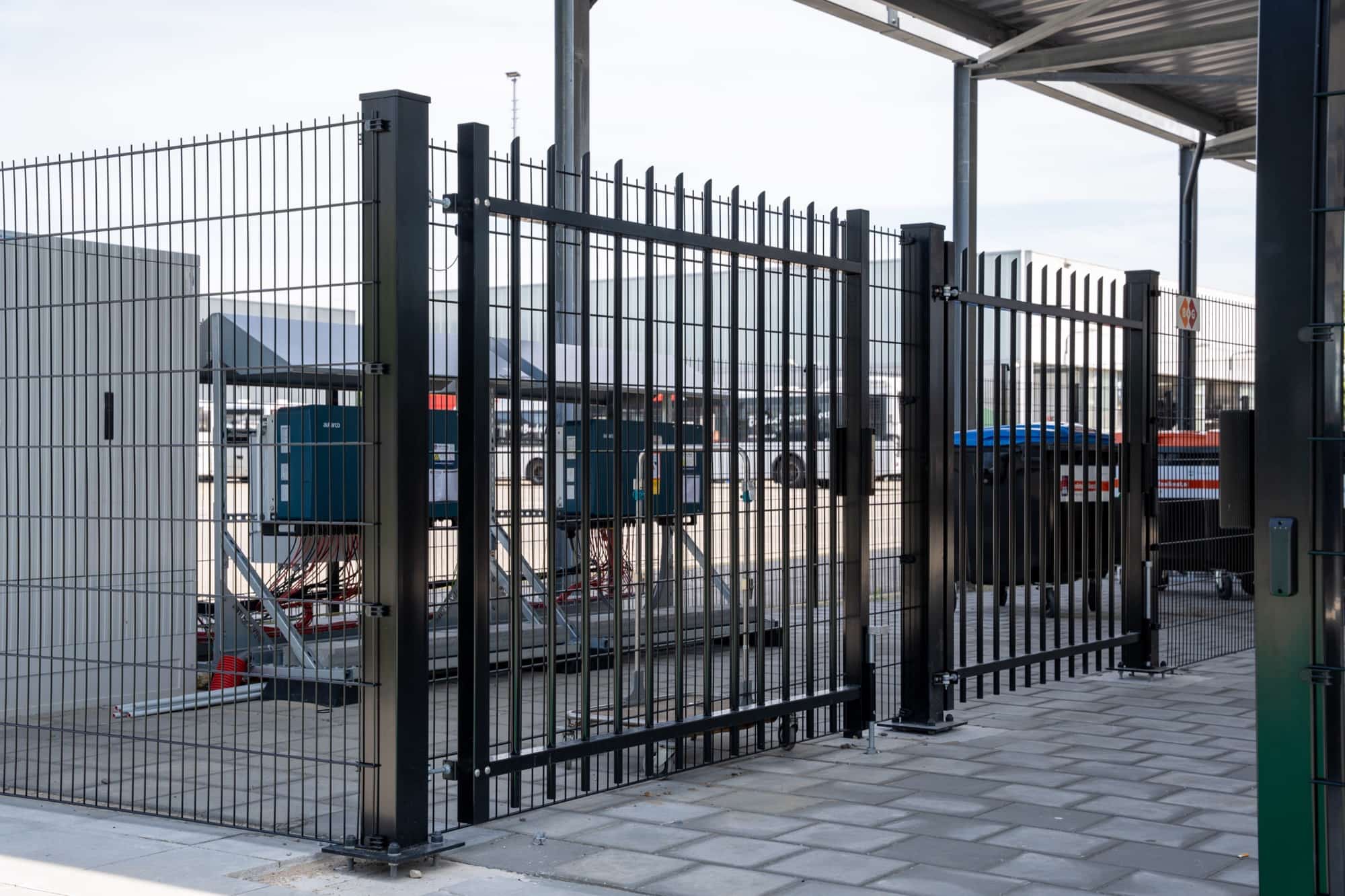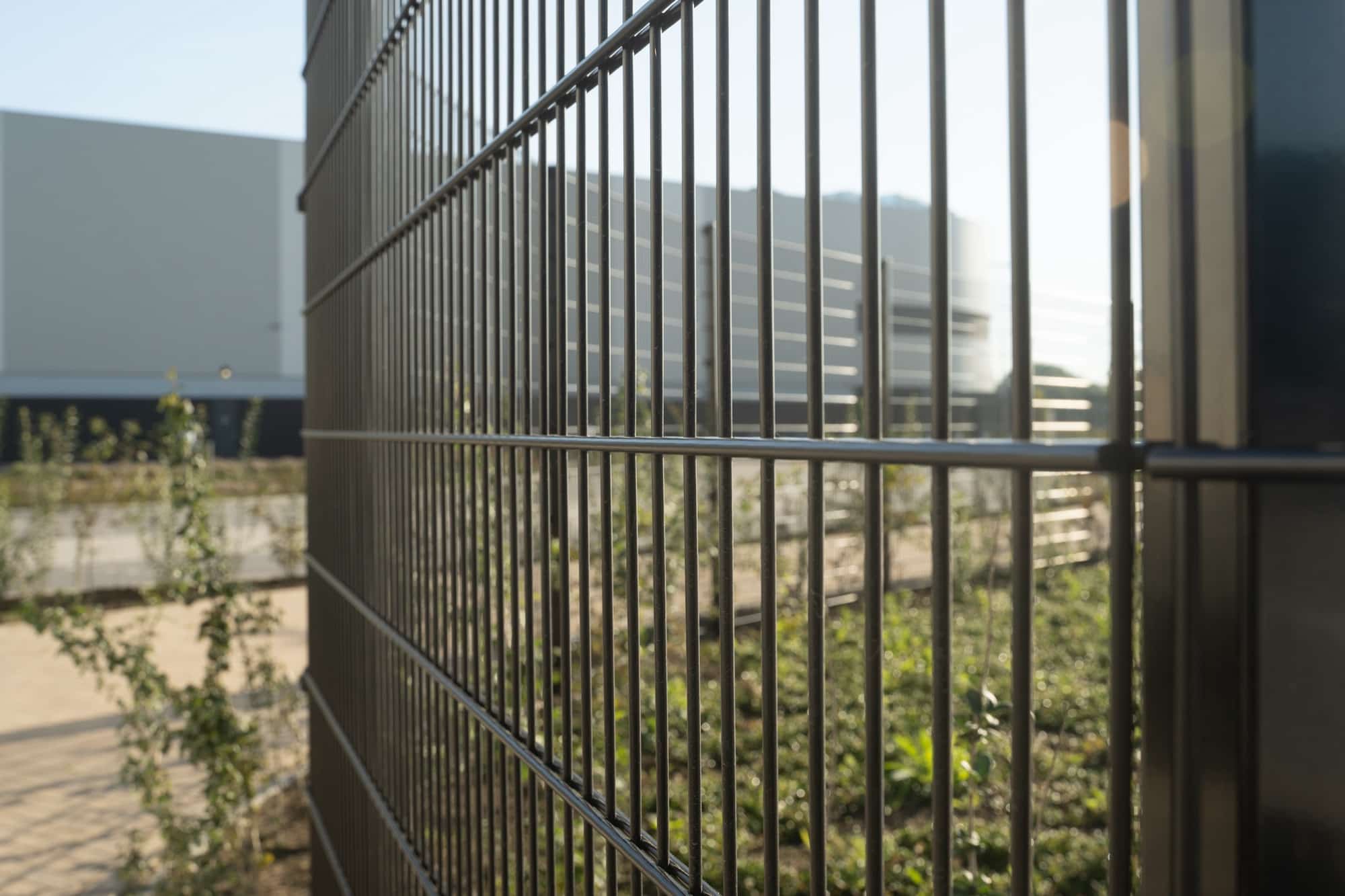 Bij industriële objecten zie je vaak een combinatie tussen draadmathekwerk en spijlenhekwerk. Alles in één kleur en je hebt een giga-strak resultaat!