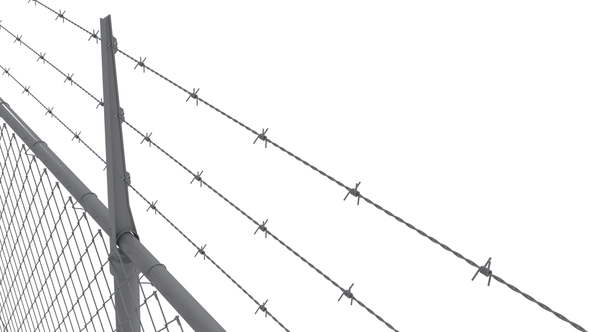 Wil je een extra overklimbeveiliging? Kies dan voor gaashekwerk met puntdraad – ook bekend als prikkeldraad. Kies je voor deze optie, dan komen er 3 rijen puntdraad boven je gaashekwerk. Deze puntdraadhouders kunnen recht zijn (zoals op de foto) of schuin, in een hoek van 45 graden naar de buitenzijde.