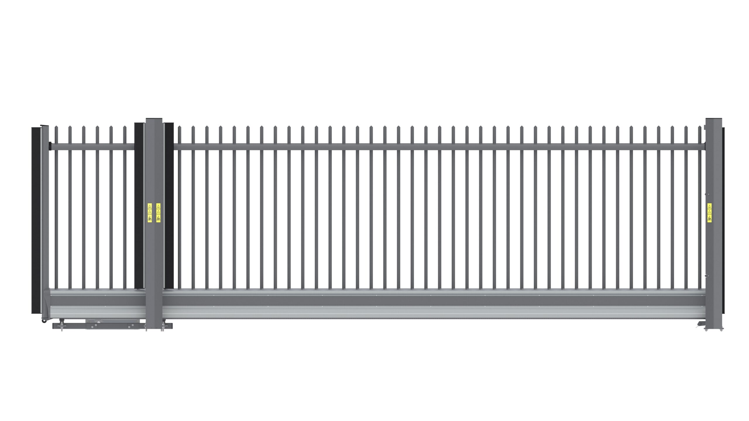 De Palissade-uitvoering van de A-Liner schuifpoort is uitgerust met vierkante, bovenaan doorstekende aluminium spijlen, die een kwartslag gedraaid zijn. Voor extra beveiliging tegen overklimmen, kunnen de spijlen bij een hoogte van minimaal 150 cm afgeschuind worden. Dit maakt de poort uiterst geschikt voor intensief gebruik en maximale beveiliging.