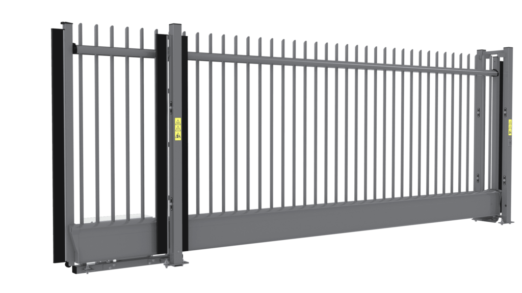 - Duurzame constructie met aluminium poortvleugel en stalen portalen